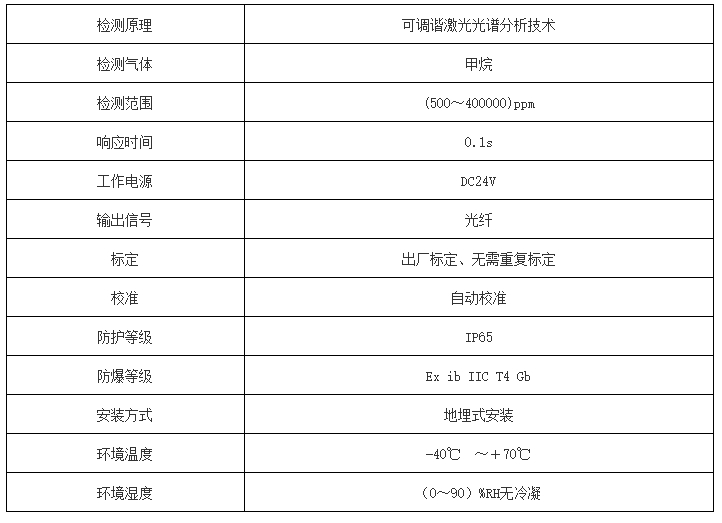 适用于长输管线、地下管廊、油气管道、矿井等易燃易爆和恶劣的工业环境中,实现远距离对危险区域甲烷浓度进行连续在线监测。